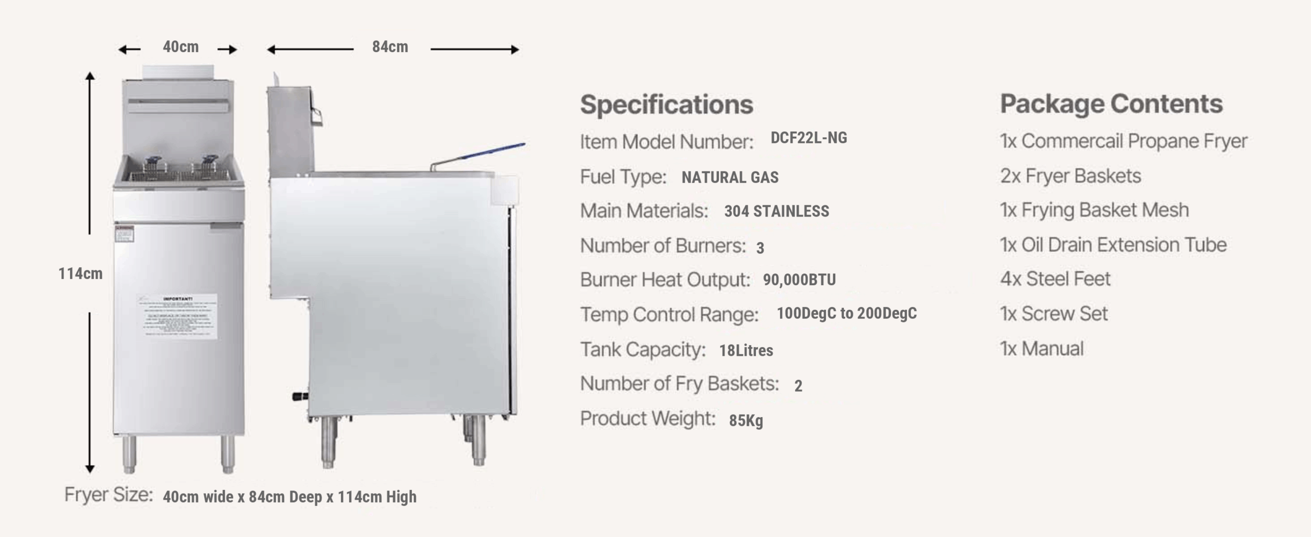 This industrial fryer’s robust cast iron tube burners deliver efficient heat transfer for uniform frying, complemented by its durable stainless steel exterior for longevity. Designed for ease of maintenance, the unit’s hinged door and accessible controls enable straightforward cleaning. Its 18kg. production capacity and twin baskets support high-volume foodservice workflows, streamlining fry tasks in busy commercial kitchens. The all-natural gas operation ensures consistent heat with minimal fluctuation, suitable for mid-volume restaurant service and institutional settings.