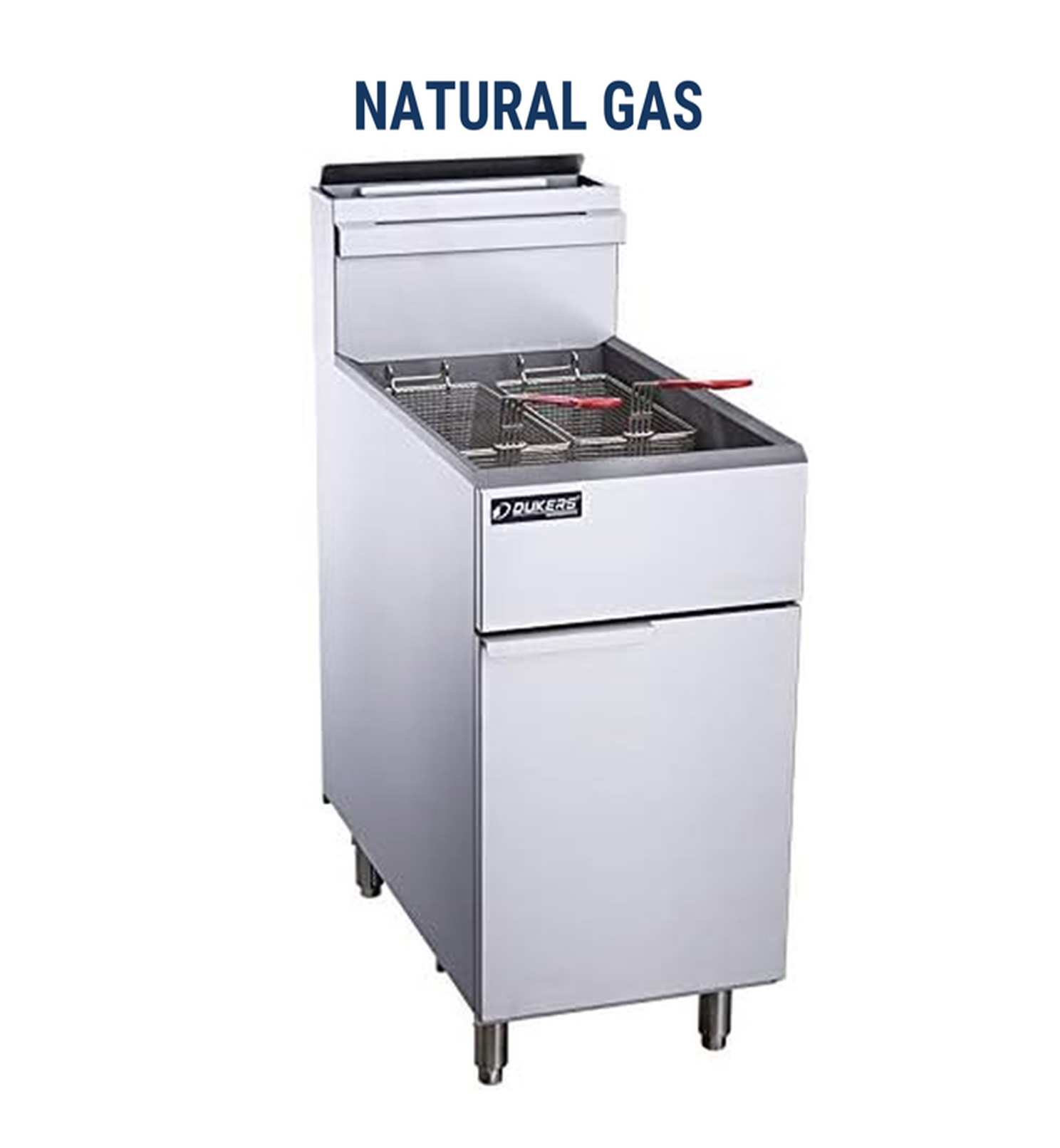 The Euro-Grand by Dukers Appliance Co. USA Ltd. DCF3-NG Fryer Natural Gas Floor Model is a commercial-grade gas fryery designed for high-efficiency food preparation in busy hospitality environments. Built with an all stainless steel exterior, the oil tank fryer features a 18kg. capacity optimized for continuous frying operations. Equipped with three cast iron tube burners and millivolt controls, it offers precise temperature regulation within a 100DegC to 200DegC range, ensuring consistent product quality. Its rugged construction and high BTU output of 90,000 provide reliable performance in restaurant kitchens, health facilities, and large-scale catering operations, facilitating quick recovery times and durable operation under demanding workloads.